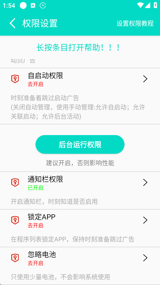 3、别忘了授权通知栏访问权限,这样软件才能及时感知广告出现。