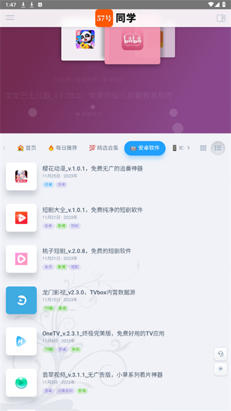 57号同学其实是个挺热闹的资源聚集地,有点像大家自发搭起来的数字集市。里面啥都有——电影、剧集、动漫、小说、游戏,甚至一些小众工具软件也能挖到。用户不仅能下载别人分享的好东西,还能自己上传资源,跟其他人互通有无。搜东西也简单,打几个字就能蹦出一堆结果,找资源没那么费劲。