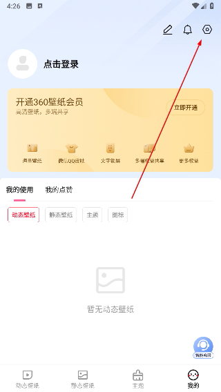 1、打开360壁纸APP,点击右上角的“设置”图标;