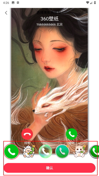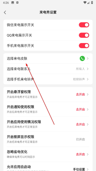 3、进入来电秀页面后,点击“选择来电皮肤”;