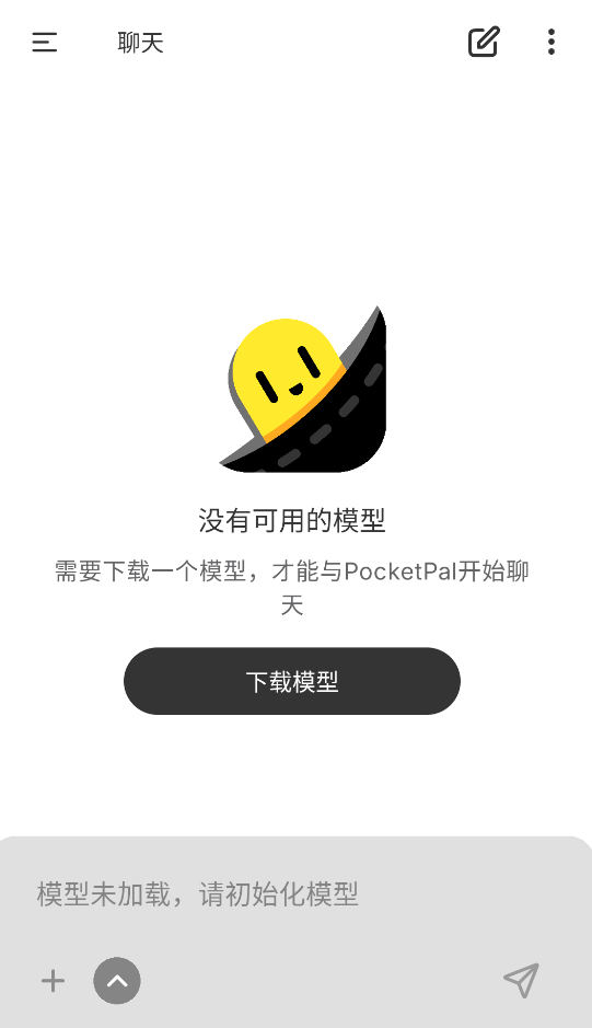 1、启动PocketPal,点击界面中的模型下载入口(此步骤需要手机连接网络)