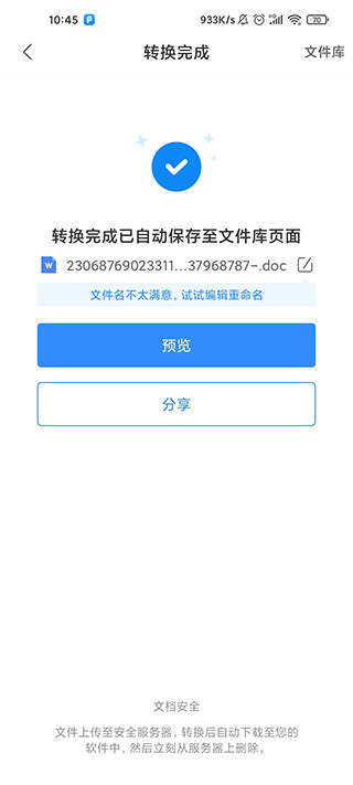 4、转换完毕后文件自动归档至文件库,支持即时预览或转发分享