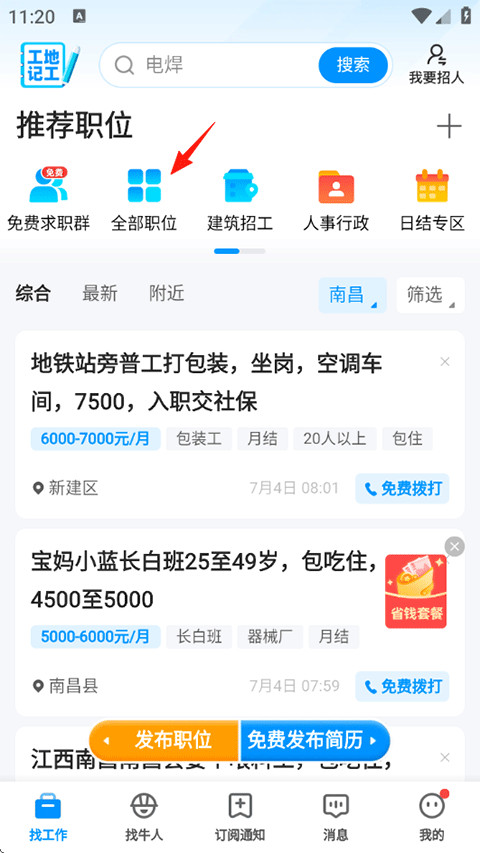 3、简历搞定后返回首页,点击"全部职位"开始浏览