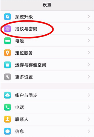 1、先进入手机自带的“设置”菜单,找到并点开“指纹与密码”选项。