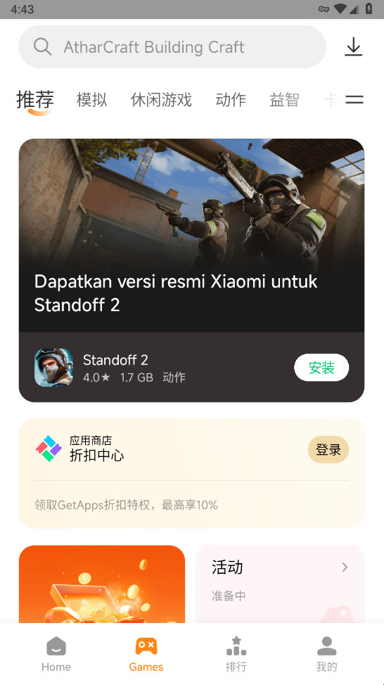 1、先打开小米应用商店国际版App,在顶部找到搜索框点进去