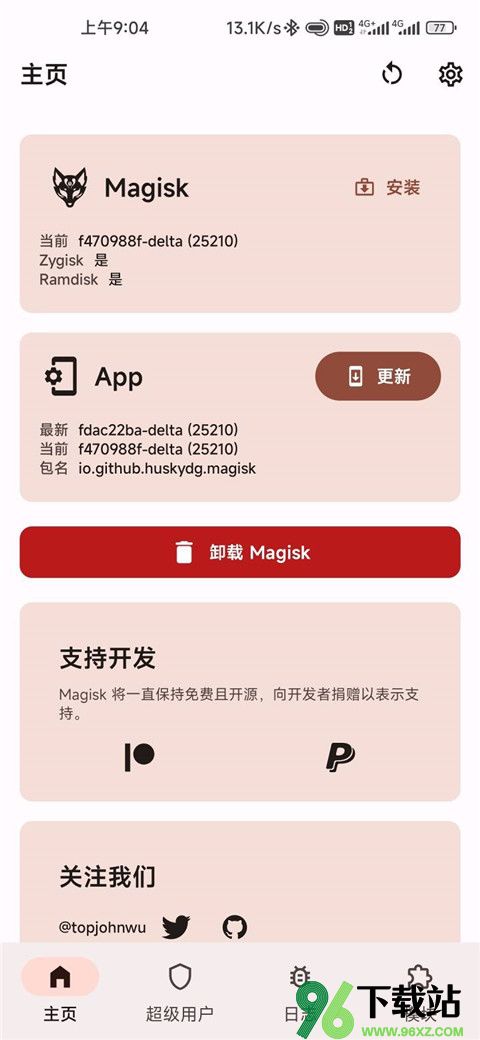 1、在96下载站下载并安装MagiskDelta。