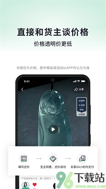 1、打开对庄翡翠APP,在“逛市场”里挑中喜欢的翡翠;