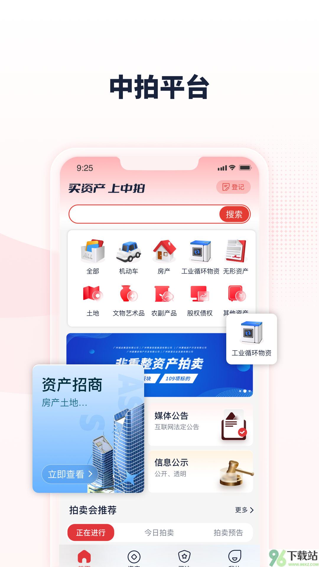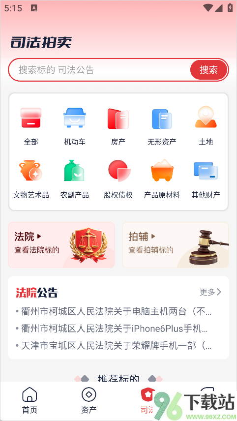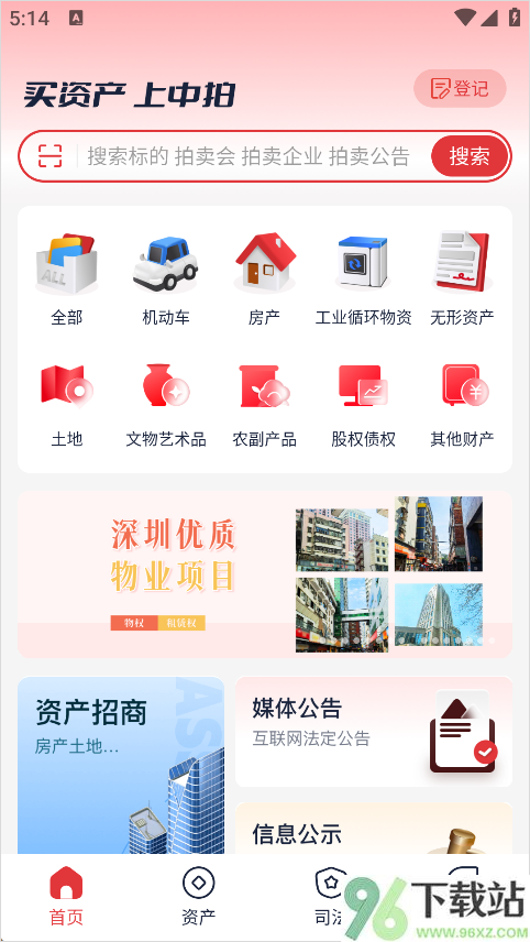 1、打开App后,首页会直观展示各类正在或即将开拍的资产,分类清晰,一眼就能找到感兴趣的方向;