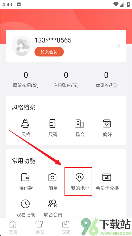 2、在个人中心里找到并点击“我的地址”这一项;