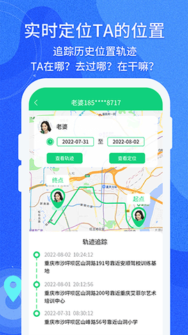 随时查看对方当前所在位置,地图上直接显示具体街道和地点,出行动态一清二楚。