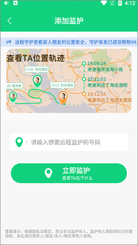 3、对方必须安装相同软件并接受你的监护请求,双方确认授权后才能开启定位服务。