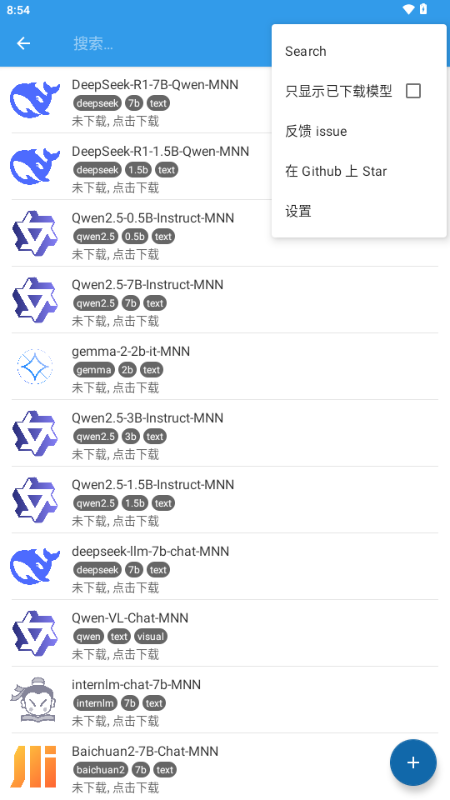 MNNChat这款应用依托MNN轻量化引擎开发而来,内置了众多主流AI大模型供用户选择。安装完成后即可在本地直接调用各类模型,省去了频繁切换不同APP的麻烦。该软件对硬件要求不高,即便是配置一般的安卓手机也能顺畅运行,响应速度相当快。值得一提的是,所有AI功能都支持离线运行,没有网络也能正常使用