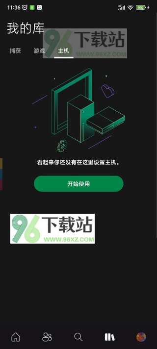2、进了App之后,你会发现“我的库”里有一些你玩Xbox游戏时自动上传的成就截图之类的东西,不过别急,这时候还没绑定主机呢,点击那个“开始使用设置主机”的按钮。