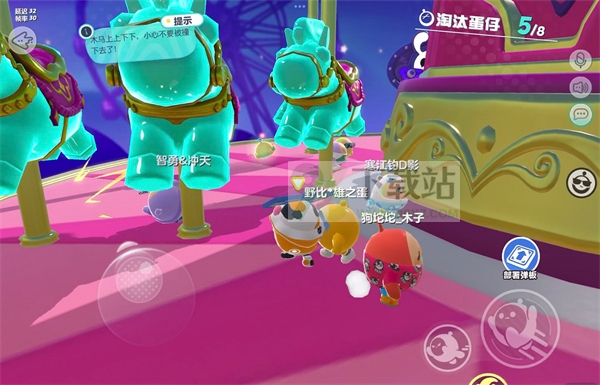看似童话,实则凶险!升降不停的木马会将你弹飞,还需提防其他玩家的地雷、云雾弹和咸鱼偷袭。建议优先拾取防御道具,保持移动,避免被围堵在角落。
