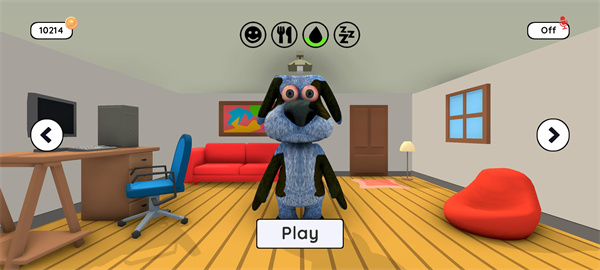 1、玩家可以和名为巴勃罗的数字狗进行全方位互动,不仅能抚摸和戳弄他,还能给他喂食、让他睡觉,甚至能听到他像真狗一样的叫声。