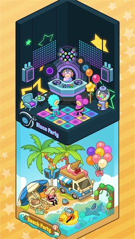 4、每次更新都有新主题派对上线,节日氛围直接拉满,圣诞灯、南瓜灯轮着来,看着就让人心情敞亮。