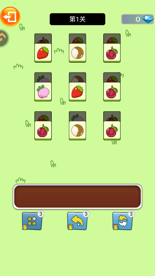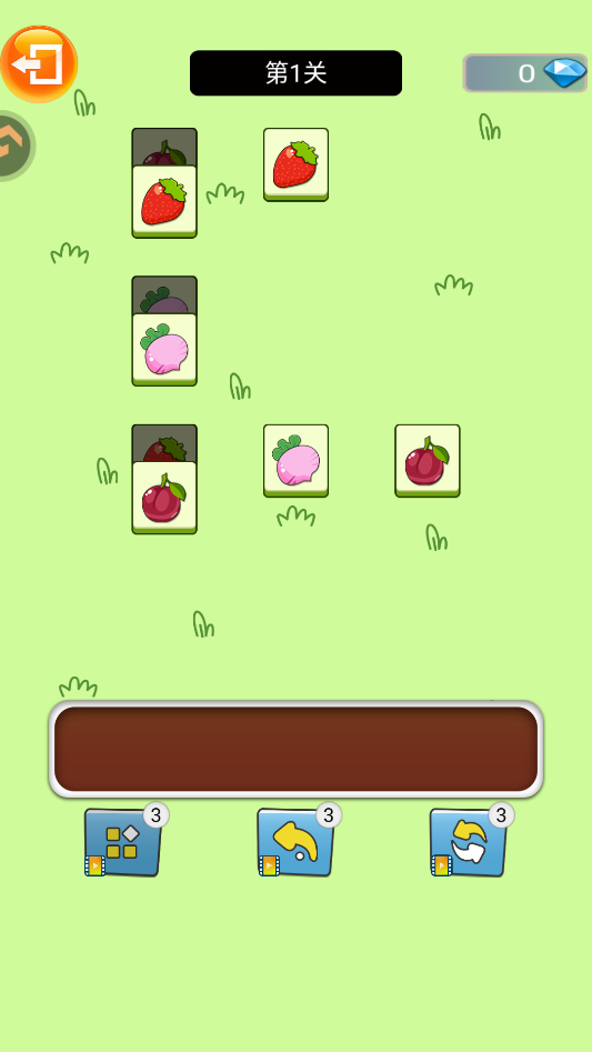 3、这部分的玩法稍微有点变化,点击屏幕上的水果,它们会掉进底下的槽里,凑够三个一样的就能消掉。