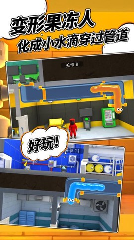 1、主角是个能拉能扯的果冻人,落地会弹,撞墙会瘪,还能挤进窄缝,靠这身本事在复杂地牢里来回穿梭。