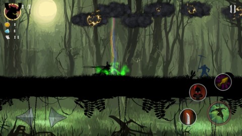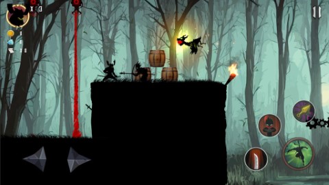 2、在精心设计的横版关卡中灵活移动,利用双段跳跃跨越障碍,躲避武士、弓箭手及敌对忍者的致命攻击。