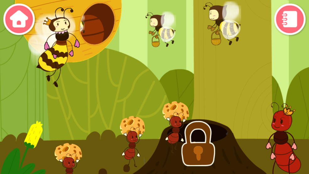 4、沉浸式情境互动体验,让孩子快速代入角色身份参与昆虫世界的日常生活。