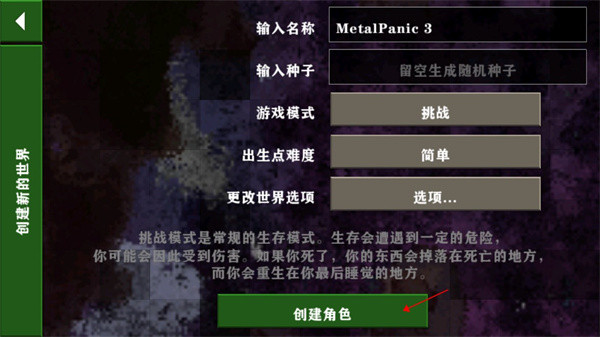 3、起个名字,挑个难度和模式——比如想轻松点就选无害,想硬核就挑战残酷,确认后就能生成角色了。