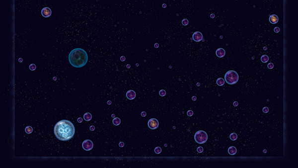 5、每次点击都会喷出一个气泡,这不只是用来移动,还能推开附近的星球。遇到危险的红球靠近时,可以借这股推力把自己弹开,化险为夷。