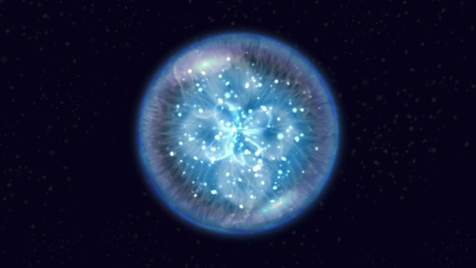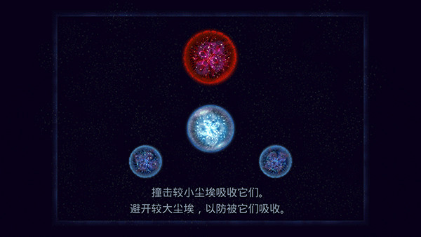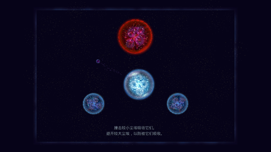 2、你操控的是一颗会动的星团,手指点哪,它就会往反方向喷射物质往前走,点得越快,推进力越强;
