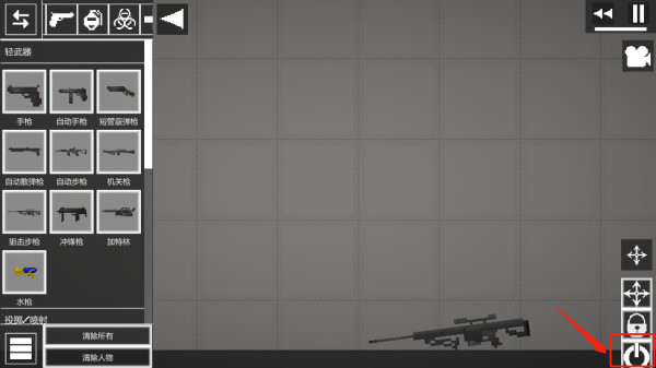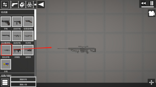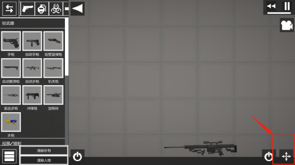 1、从道具栏选中想要的枪,拖到地图任意位置放下。
