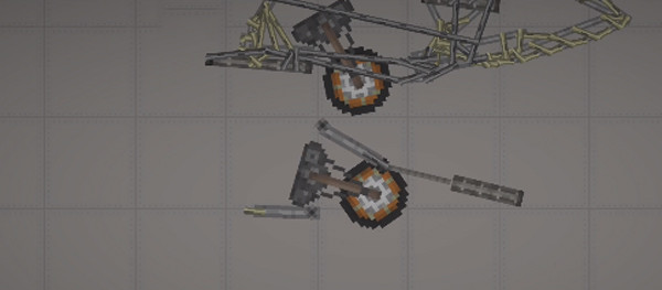 1、先别急着堆零件,得有个能收放的起落架。用轮胎配上引擎,再连上几块铁板,前轮搞定后,后面也照着这个思路来一套,稳当点才不会一飞就散架。