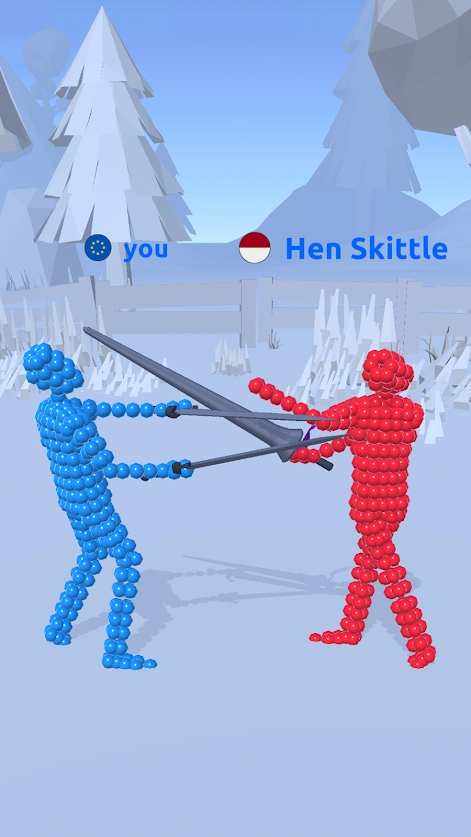 1、每轮开打前先选武器,接着用手指拖动角色全身各处关节,调出理想的攻击或防守姿态——武器指哪儿、能打多远,全看你怎么摆。