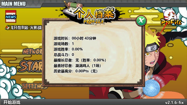8、右上角那个狐狸面具图标点一下,就能查看自己的个人档案,包括胜场、使用角色记录啥的。