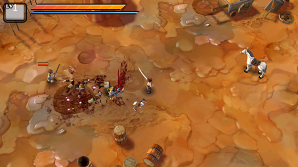 【绝杀吸血】:手指在屏幕上朝敌人方向快速一划,只要目标不是BOSS,角色就会瞬移过去秒杀对方,并回一点血。这招很爽,但代价是大量耐力,省着点用。