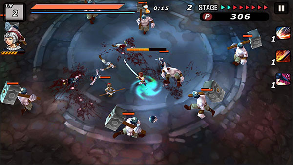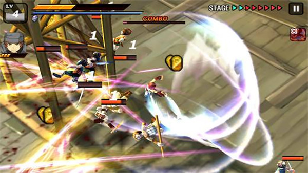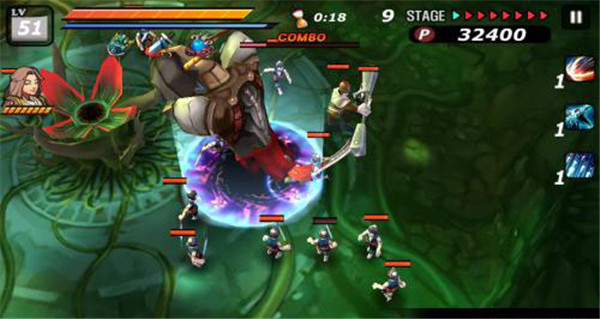 手指在屏幕上朝有普通敌人的方向快速一划,夏侯惇就会瞬移过去发动处决技,直接秒掉对方并回一点血。这招很酷,但代价是大量耐力,不能乱用,尤其对BOSS无效。