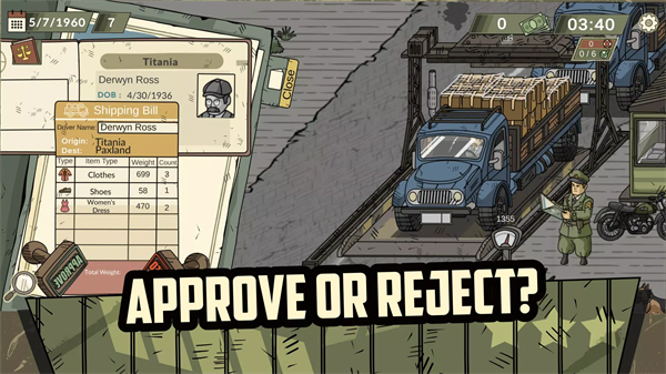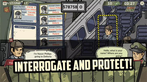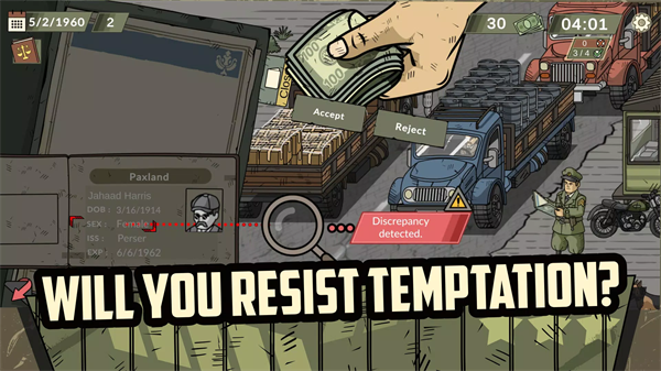 2、一进游戏你就成了边境检查站的负责人,面前来来往往的车辆和行人全得你亲自过一遍。