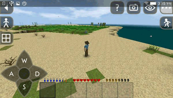 进游戏后,用手指或按键控制角色移动,还能动手搭建自己的小屋;
