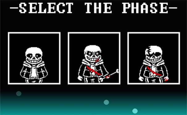 因为玩家篡改游戏数据,Sans的程序出现异常,获得了抓取并复现其他攻击动画的能力(比如剑气)。外表变化不大,只是眼眶里的光变成了暗红色。
