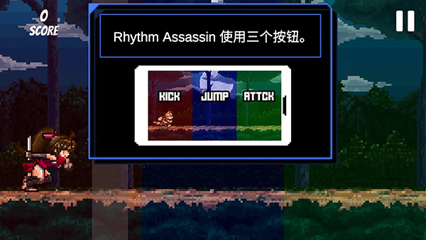 1、屏幕分成左、中、右三块区域,分别对应踢击(KICK)、跳跃(JUMP)和攻击(ATTACK),根据提示及时点击就行。