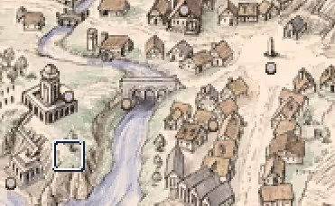 3、如果想结束当前探险,就把光标挪到地图上的倒三角图标上,就能回到霍尔姆镇。
