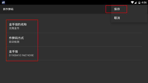 新建一条作弊码,随便起个名字,把对应的代码粘贴进去,保存就行。