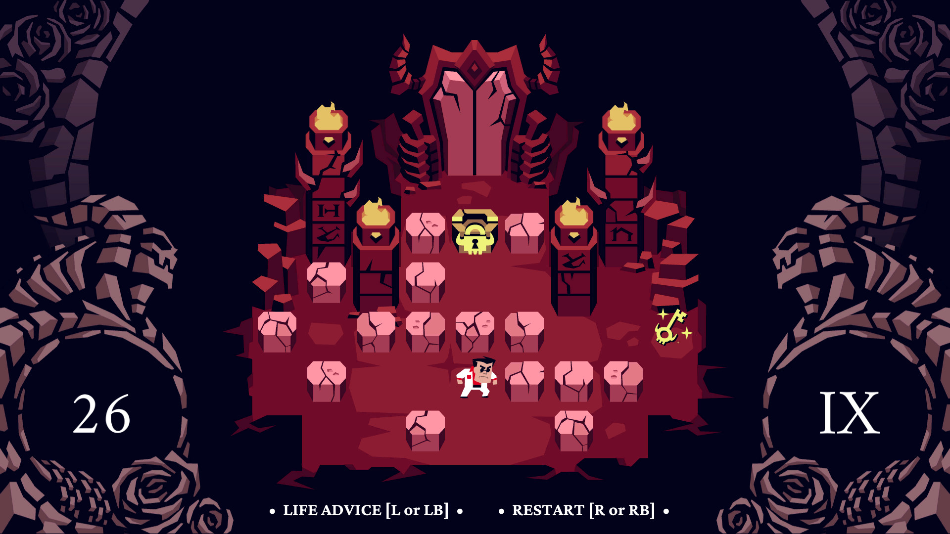 《地狱把妹王》(Helltaker)是波兰独立开发者vanripper捣鼓出来的一款小众神作,把推箱子谜题和轻松搞笑的对话冒险巧妙地揉在一块儿。你扮演一位穿白西装的愣头青,一头扎进地狱,一边挪动障碍物解机关,一边跟性格各异的恶魔妹子搭话套近乎。从社畜客服到高冷CEO,十位角色个个有梗,剧情不走套路还带点无厘头,玩起来既烧脑又解压,节奏刚刚好。