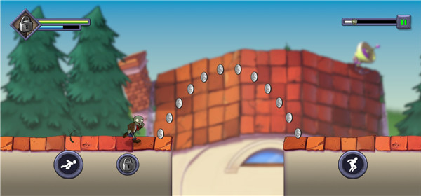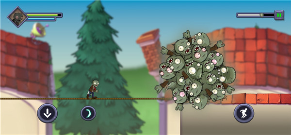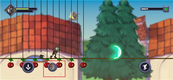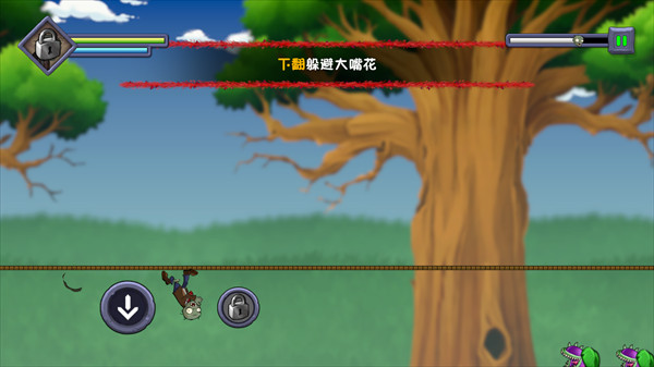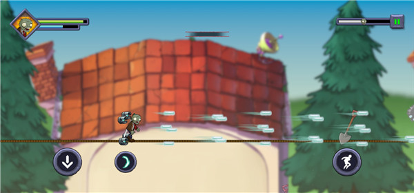 进了关卡后,你就成了那只披着破衣烂衫的主角僵尸,得一边往前冲,一边躲开从天而降的铁锹、突然冒头的大嘴花,还有各种机关陷阱。