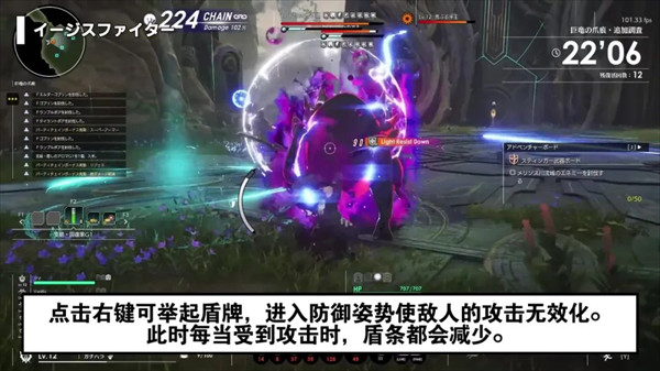 加上盾牌相关的技能数量不少,破盾后战斗手段会受到很大限制,所以平时要多利用闪避和跳跃来规避伤害,只有面对强力攻击或无法躲避的招式时才举盾应对,需要根据实际情况灵活切换策略。