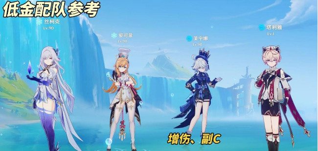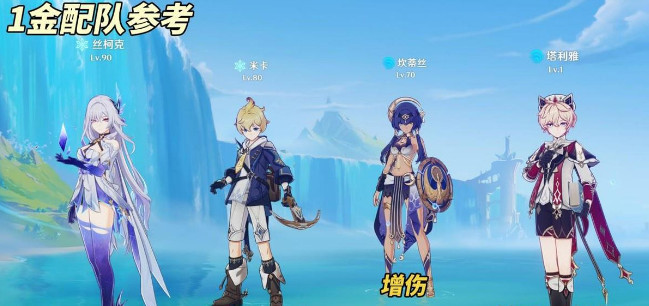 丝柯克搭配爱可菲、芙宁娜和塔利雅。