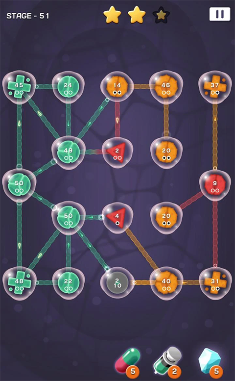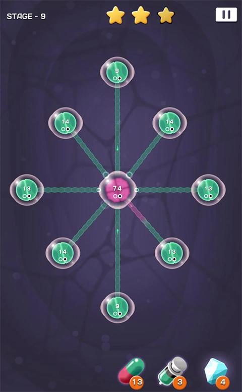 在游戏中,你会操控各种功能不同的细胞:有的擅长攻击,有的恢复力超强,有的则适合稳扎稳打。通过简单的点击操作,你可以连接细胞、分配触手、发起进攻或构建防线。核心目标很明确:保护自己的细胞不被敌人吞噬,同时逐步反攻,最终掌控整个战场。这种融合了塔防、资源管理和即时策略的玩法,让人仿佛置身于一场微观世界的激烈战争,既烧脑又充满成就感。