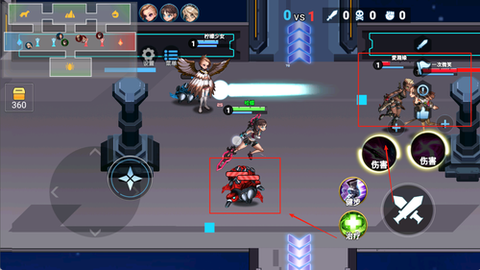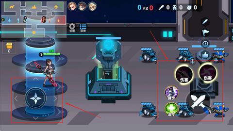 1、进游戏后先熟悉主界面布局,技能按键都在屏幕右边,左边是移动摇杆,手指滑动就能控制角色走位。