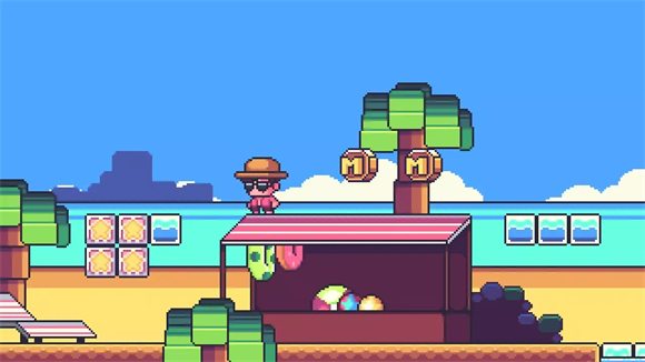 1.画面采用经典像素美术风格,配色明快活泼,整体氛围轻松愉悦,非常适合休闲时光体验。