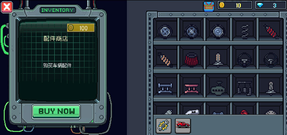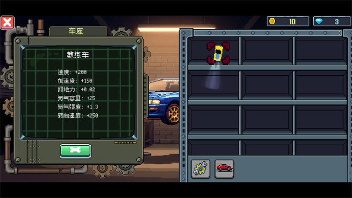 2、收录了好多款像素造型的赛车,每辆车的脾气秉性都不一样,开起来的手感差别很大,得多试几把才抓得住窍门。