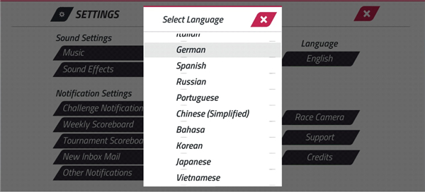 3、进入设置页面后,点击右侧“Language”(语言)按钮,在下拉列表中选择“Chinese”即可完成中文切换。