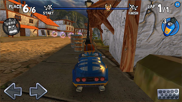 2、开车可不只是往前冲,一个不留神就可能冲进海里翻个底朝天,或者被对手用道具掀翻在泥坑里,意外频出反而更带感;
