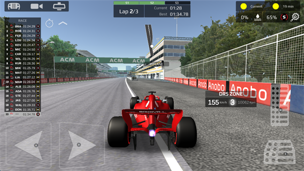 采用经典的虚拟按键布局:屏幕左侧控制方向转向,屏幕右侧负责加速与刹车。操作直观,易于上手。